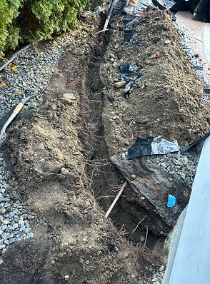 We exposed the entire trench, removed the failed drain system, installed a new perforated French drain with proper grading, added protective fabric, and rebuilt the trench using clean, drain-safe gravel.